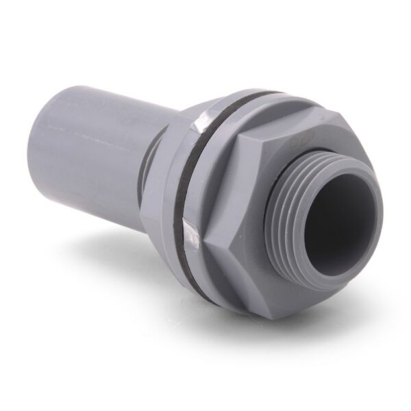 Our ABS tank connector plain M x thread F fittings are available in sizes 1/2″ to 6″.