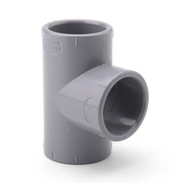 ABS tee 90° plain fittings are available in sizes 1/2″ to 8″.